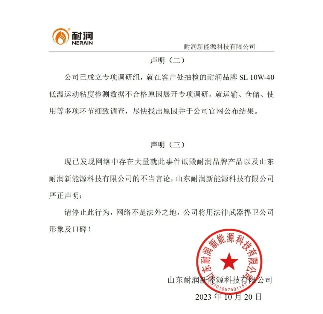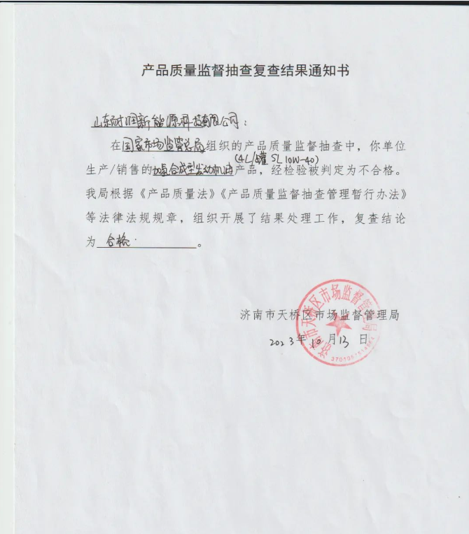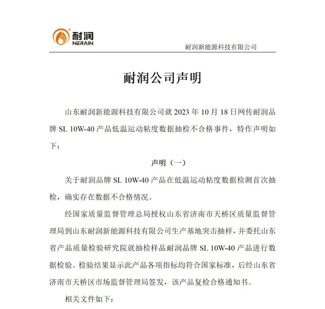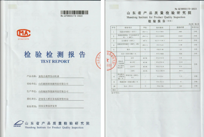 官方聲明!耐潤潤滑油質(zhì)量檢驗研究院檢驗合格!